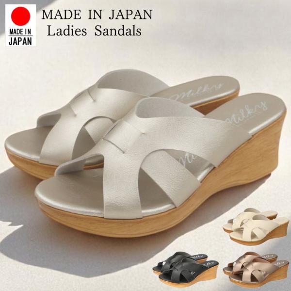 レディース サンダル ウェッジソール ミュール 厚底 オープントゥ つっかけ おしゃれ ミルキーミルキー 日本製 夏 nc1336