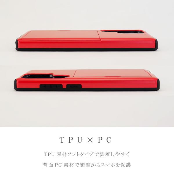 側面TPU素材で柔らかく装着しやすい、背面PC素材で衝撃からスマホを保護します。
