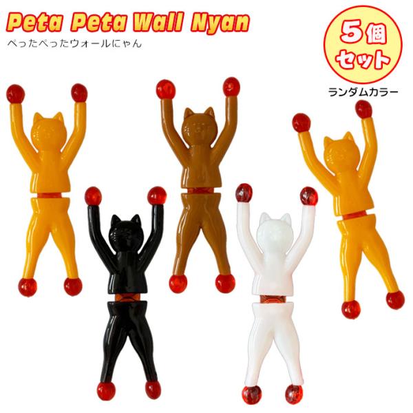 ペったぺった ウォールにゃん 5個セット売り ランダムカラー ※3点までメール便OK おもちゃ 猫 キャット くっつく 人形