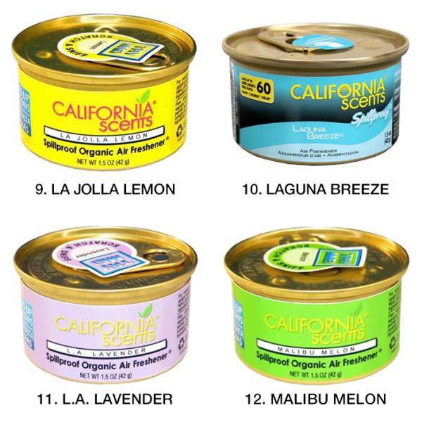 缶型 カン 芳香剤 香り長持ち エアフレッシュナー 缶 置き型 US USA America アメリカン雑貨 アメリカ雑貨 アメ雑 おしゃれ オシャレ かっこいい 車 カー用品 車載 車内 部屋 調整 芳香 いい香り フレグランス アロマ 癒し 香り 匂い アメリカン CaliforniaScents Organic Air Freshener カーエアフレッシュナー 缶詰 匂い ラグナブリーズ バニラ ストロベリー 西海岸 西海岸スタイル 都市 ハワイ Hawaii ハワイアン雑貨 雑貨 グッズ アイテム アメ車 ローライダー 車用 カーアクセサリー 車内アクセサリー 車内インテリア カスタム カスタムカー