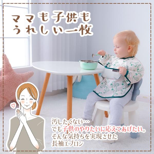 袖付き お食事エプロン 長袖 スモック 撥水加工 ポケット 離乳食