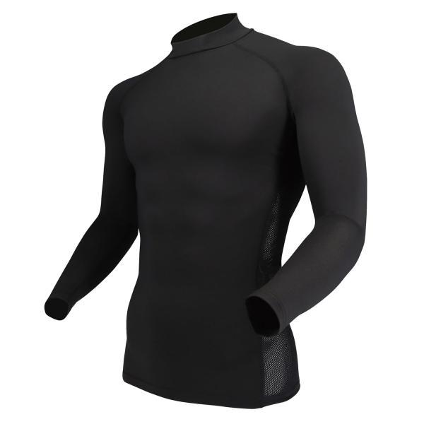 (2個までメール便選択可) おたふく手袋 JW-625 BT冷感・消臭パワーストレッチ長袖バックハイネックシャツ ブラック 夏用インナー S〜5L BODYTOUGHNESS