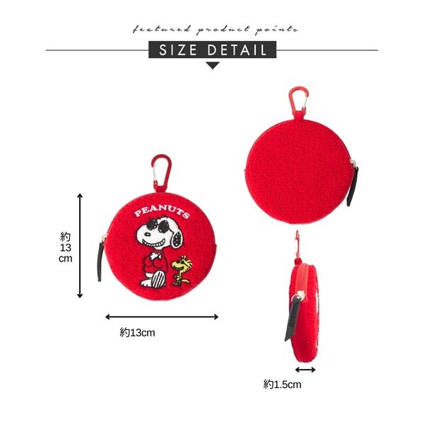 バッグ(鞄) スヌーピー PEANUTS ピーナッツ ラウンド ポーチ さがらポーチ さがら刺繍 キャラクターポーチ 小物入れ カラビナ付き (アクアカルダ)