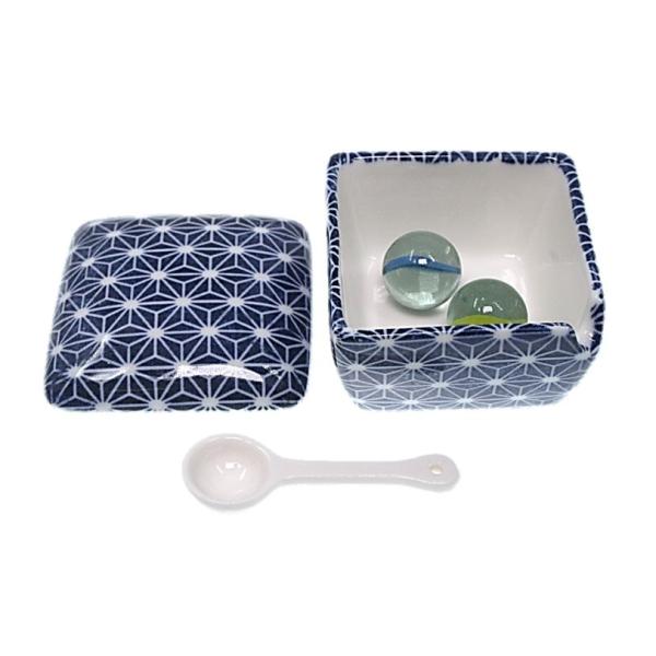 青色麻葉 薬味入 日本製 陶器 スプーン付き 一味 塩 山椒 七味 辛子 業務用食器 ACSWEBSHOPオリジナル