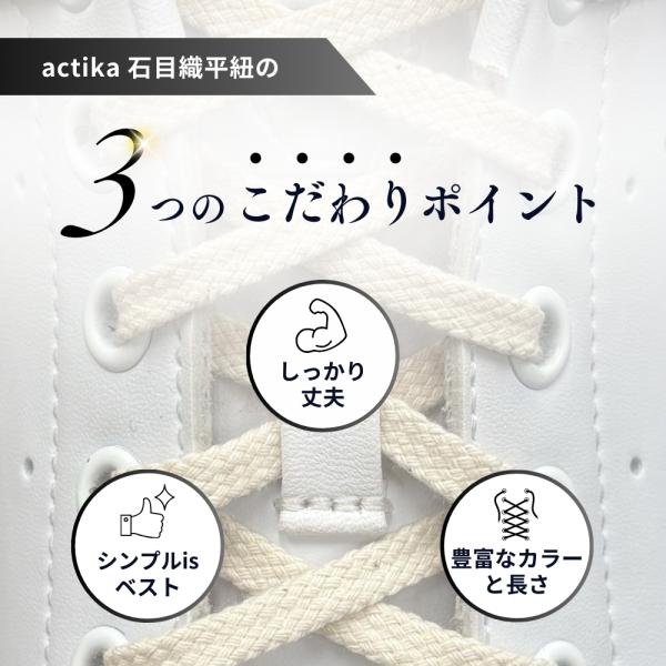 靴紐 靴ひも シューレース アクティカ 日本製 石目 平紐 140cm 16色 結び方 通し方 おしゃれ NIKE アディダス コンバース バンズ 推しカラー ポイント利用