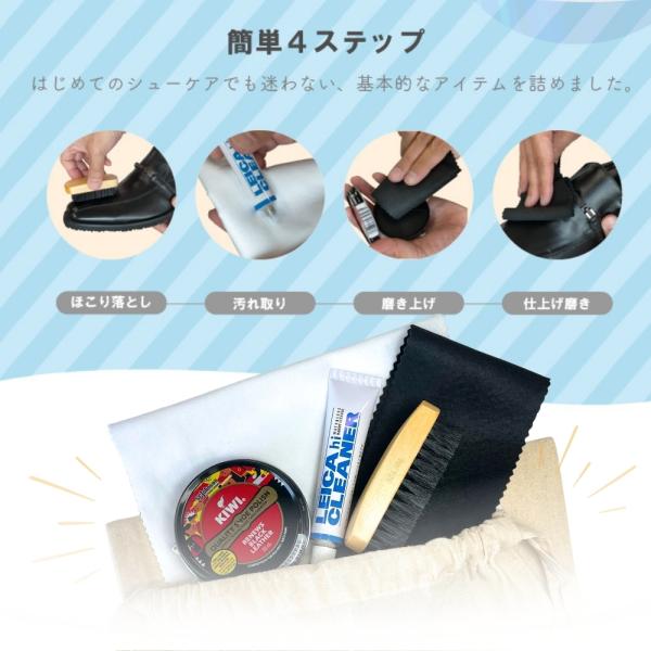 靴磨き セット シューケア 革靴 簡単 靴磨き KIWI ギフト 就職祝い マスターチューブ クリーナー 白 黒 テレンプ 304 ミニブラシ リネン袋付