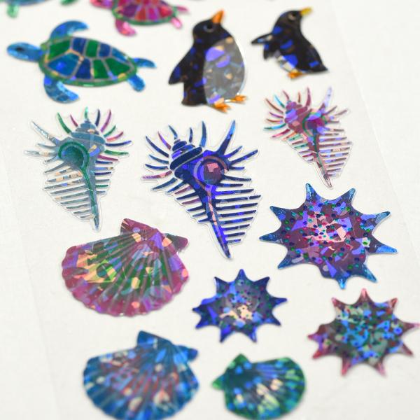 G.C.PRESS シール サマーモチーフ クリスタル 125-08|文房具 デコレーション 打ち上げ花火 水族館 夏休み キラキラ ホロ箔