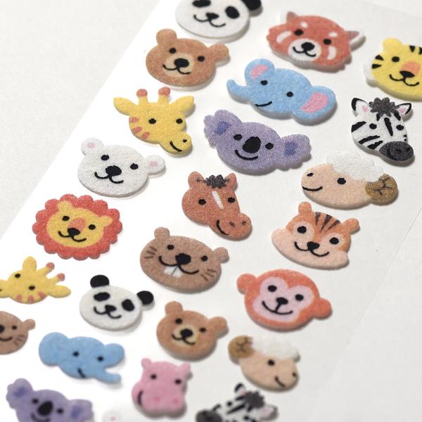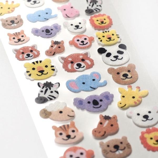G.C.PRESS シール 起毛 動物のかお 133-77|文房具 カラフル デコレーション アニマル 動物園 かわいい