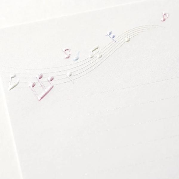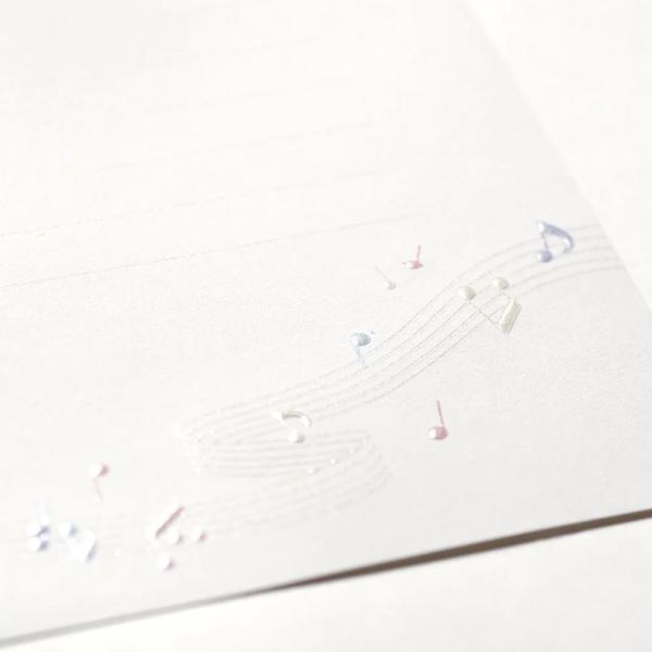 楽しそうな音色が流れてくる様子をイメージした、カラフルで優しい色合いの音符モチーフの便箋です。