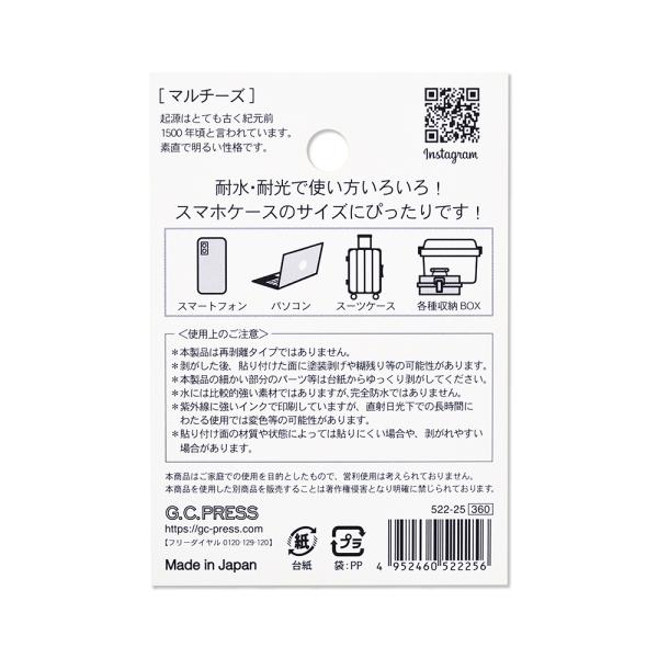 耐水・耐光でいろいろなものに貼りやすく、スマホケースにもぴったりのサイズです。