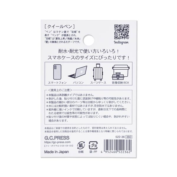 G.C.PRESS ステッカー クイールペン 522-36|文房具 シール デコレーションシール ホログラム 羽根ペン 防水 耐水