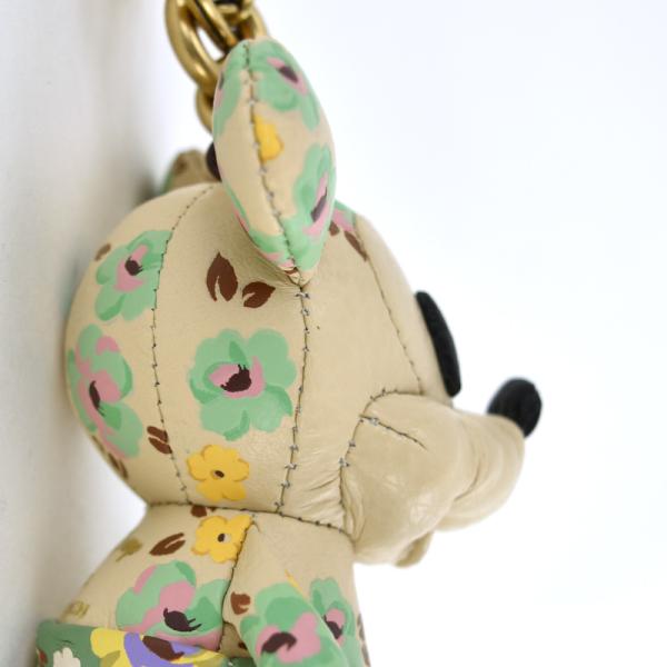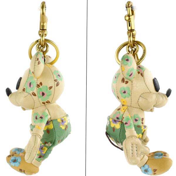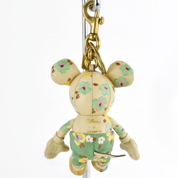 ディズニー×コーチ バッグチャーム ミッキーマウス・フローラル プリント CH601 ベージュ×マルチカラー キーリング レザー 小物 レディース アクトワン