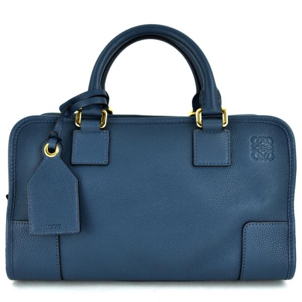 LOEWE Amazona バック 革 レザー ミニボストン ダブルファスナー開閉 青 ゴールド金具 カーフレザー 中古 アクトワンヤフー店 送料無料