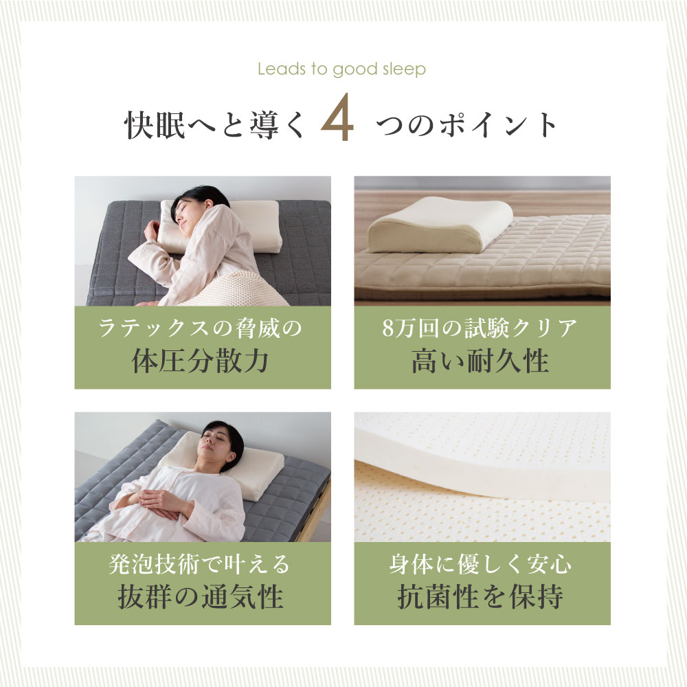 ・天然のラテックス枕だからこそ弾力性が頭から首、肩をしっかりサポート。