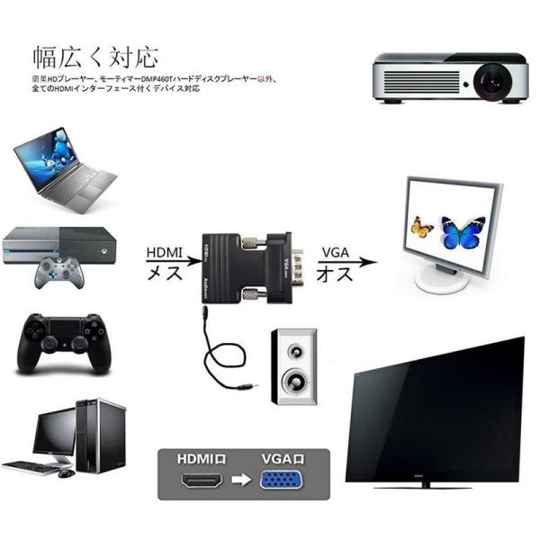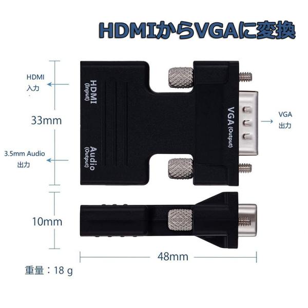 HDMI to VGA 変換アダプター ビデオアダプタ 音声出力 3.5mm ケーブル 付き 電源不要 オーディオ 1080p ビデオ出力