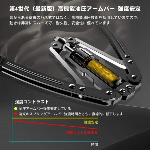 【油圧式アームバー】このアームバーは最新の高性能高機能油圧技術で前世代があった油が漏れることを防ぐために、シームレスはんだ付けにする技術を利用して、より耐久性、安全性に優れていますだけでなく、油圧アームバーの強度も安定しています。