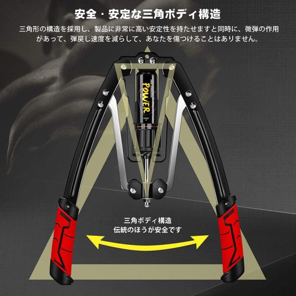 【上半身筋トレアームバー商品仕様】[用途]上半身のトレーニング全般をカバーし、大胸筋はもちろん上腕、背筋、三頭筋、二頭筋、三角筋などの筋肉トレーニングに利用できます。[サイズ]全長42.8cm横幅16.6cm重量2.3kg[素材]本体:カーボンスチール、ハンドル:滑り止めPUソフトラバー[負荷強度]10kg〜200kg[ボディ設計]安全な三角ボディ構造。忙しい毎日でジムに通う時間が取れない方には、自宅にいながら、本格的な筋力トレーニングが可能なアームバーをおすすめします。