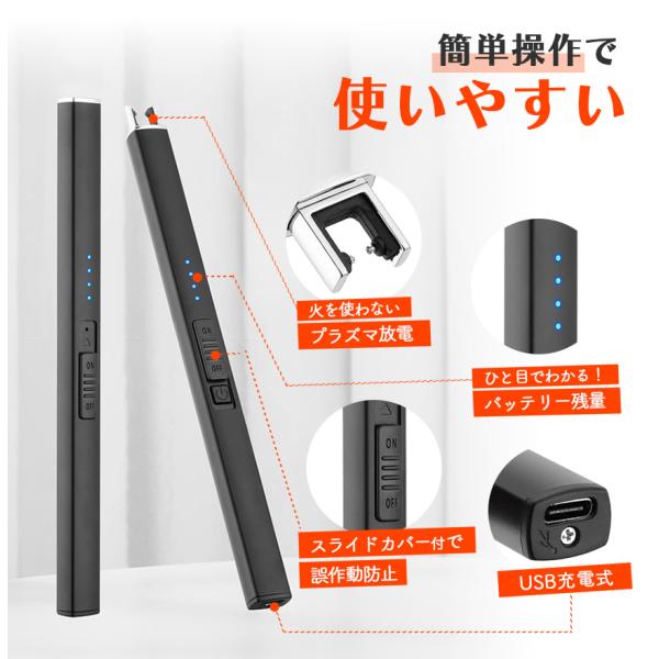 ●ガス・オイル交換不要! 電子ライター●まだライターを使って火をつけていますか?ガス・オイルの交換不要、風に強い、安全なライターがあります。point【炎が上がらず安心・安全】電気で着火するため、炎が上がらず、安心・安全にご使用いただけます。点火する位置から十分な距離があり、火傷をしにくいのも◎