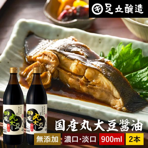 足立醸造 国産丸大豆醤油 濃口 淡口 900ml ×2本セット 送料無料 無添加醤油 醤油 無添加 濃口醤油 薄口醤油 しょうゆ 国産 丸大豆醤油 天然醸造