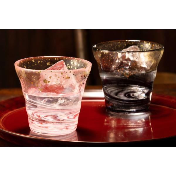 グラス ロックグラス ウイスキーグラス 焼酎グラス 津軽びいどろ 【 氷華金彩ロック グラスペア 彩墨 300ml 】 プレゼント ギフト 贈答