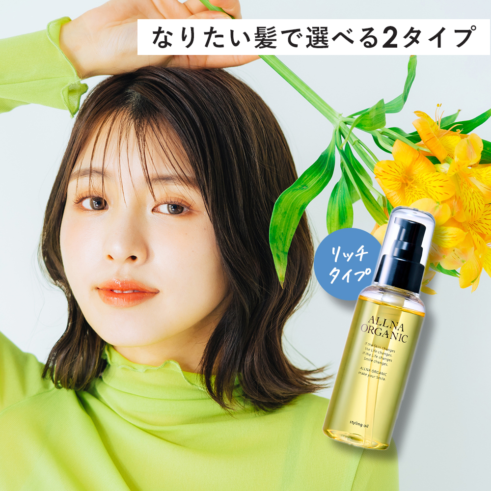 【 自然派オイルで 今っぽい濡れ髪へ 】ヘアケアにこだわるALLNA ORGANICから『スタイリングオイル』が登場!ショートからロングまで、どの長さも自由自在♪