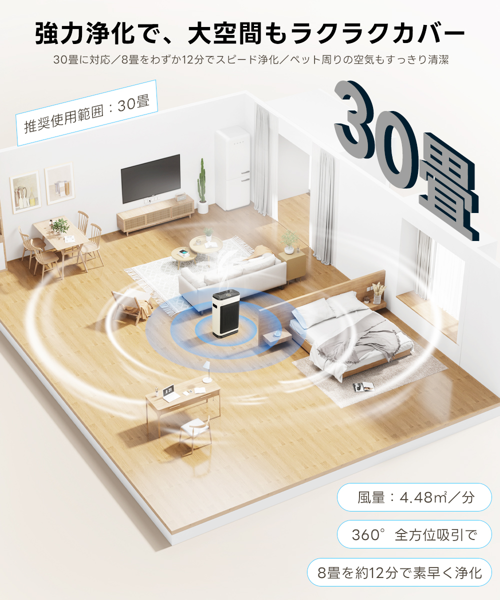 空気清浄機 30畳 花粉 2026最新 コスパ最強 HEPAフィルター 大空間 強力 除菌 脱臭 花粉症対策 PM2.5 ウイルス リビング オフィス 静音 おしゃれ