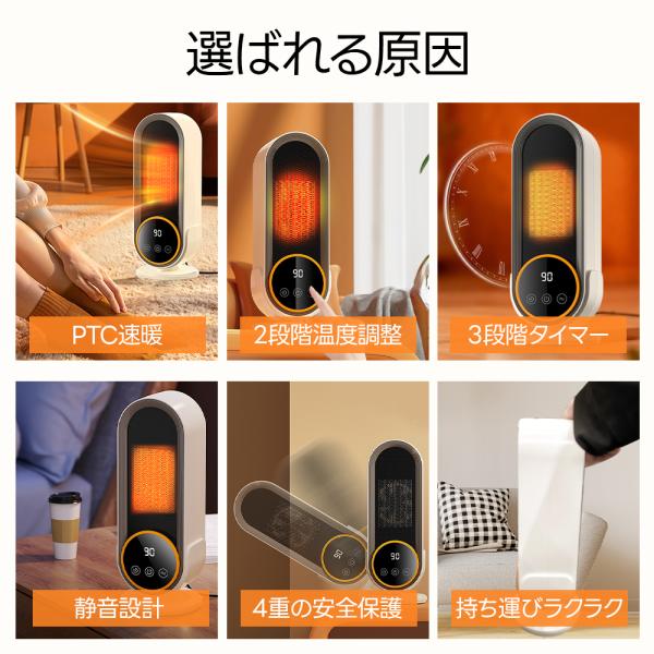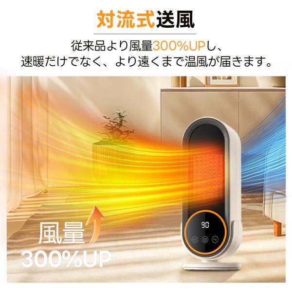 ※ご注意:ヒーターの温風を表示ために、画像にオレンジ光を使ってますが、温風のイメージ画像です。実物は発熱の時にオレンジ光になりません。