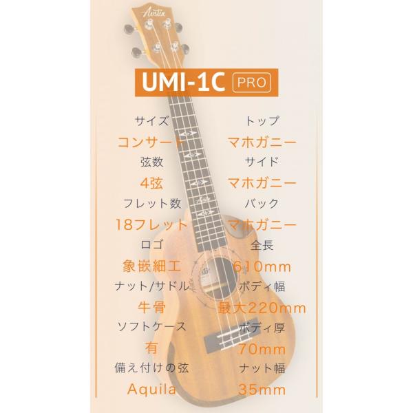 Aostin・UMI-1C Pro・コンサートウクレレ・カッタウェイ仕様/コンター加工・マホガニー材【付属品:安心3年保証書・チューナー・教則本・コードチャートなど】