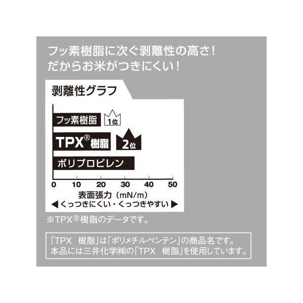 TPX樹脂使用でさらにこびりつきにくく、擦りがラスのように美しいしゃもじです。
