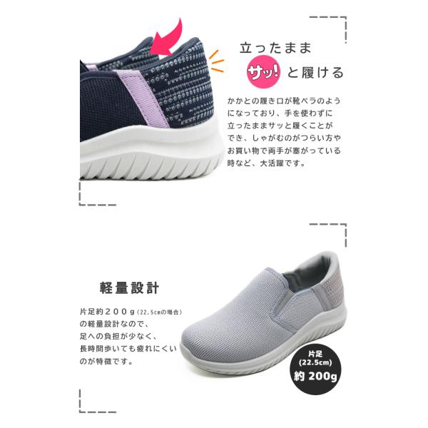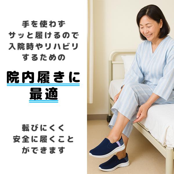 レディース 手を使わずに履ける ハンズフリー スニーカー 軽量 スリッポン 手を使わない サッと スポッと 紐なし 立ったまま 履ける HL5359