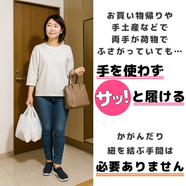 レディース 手を使わずに履ける ハンズフリー スニーカー 軽量 スリッポン 手を使わない サッと スポッと 紐なし 立ったまま 履ける HL5359