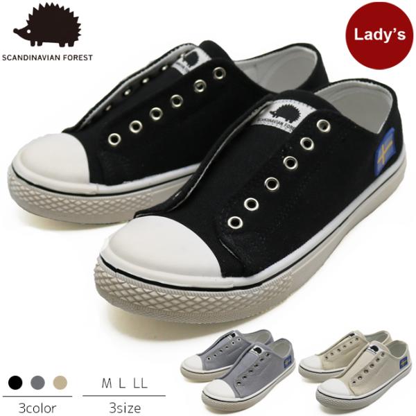 SCANDINAVIAN FOREST スカンジナビアンフォレスト レディース ローカット スニーカー ハリネズミ 紐なし ブラック グレー キナリ 北欧 91022
