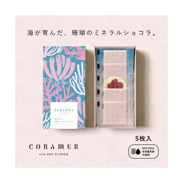 植物油脂不使用 CORAMER 5枚入り ミネラル豊富なサンゴとエディブルフラワーのチョコレート 天然由来色100% 合成着色料不使用 ギフト 手土産 ピンク 白