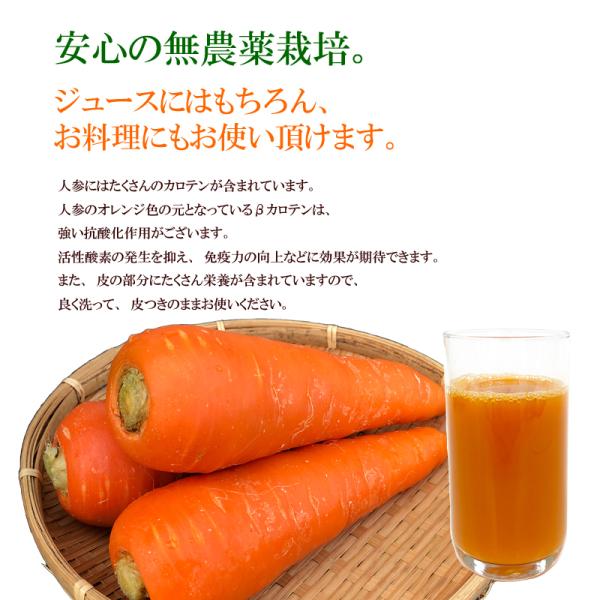 環境や健康に配慮して育てた、無農薬の人参です。是非お召し上がりください。