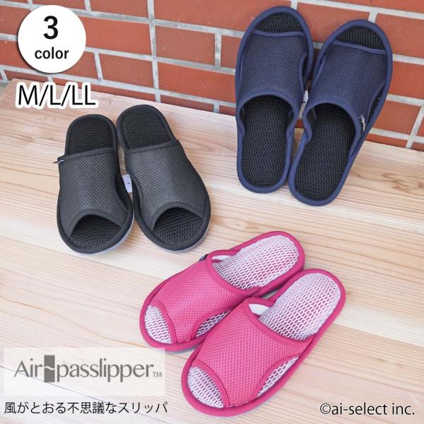 スリッパ エアパスインソール 前開き 洗濯機で洗える 蒸れない 軽量 3足以上で送料無料 来客用 男性 メンズ レディース 女性 ka smsp mom pap