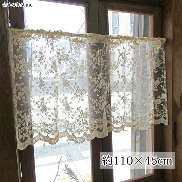 ai カフェカーテン ポスト投函で送料無料 可愛くリニューアル 組み合わせて 130×縦20cm ギュピールレース プチローズ 薔薇 バラ ベリーショート シンプル フ