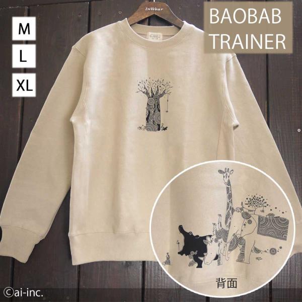 かめいち堂 裏起毛 トレーナー スウェット バオバブの木 動物 長袖 クルーネック バックプリント 綿100% 大人 レディース メンズ 星の王子様 we