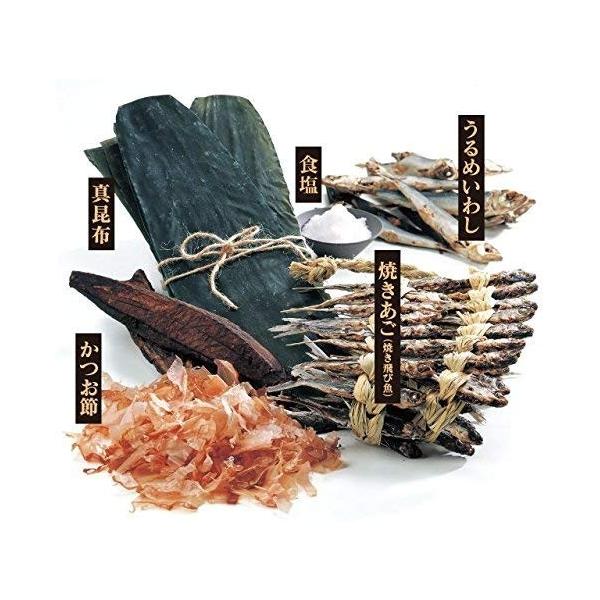 主要原料 焼きあご、かつお節、うるめいわし、真昆布、海塩