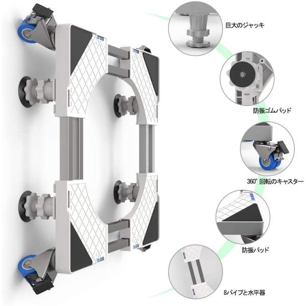 [15-17日限定10倍P付] 洗濯機置き台 耐荷重約500kg 数量限定キャンペーン 4足4輪 スライド台 キャスター DEWEL 伸縮式 幅/奥行き:50~69cm 振動異音軽減