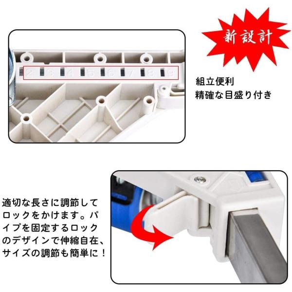 ネジでパイプの固定は不要、ロックを押すだけでサイズが簡単に調節できます〜
