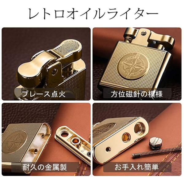 オイルライター レトロ クラシック設計 DEWEL 復古 小型 灯油ライター 着火石付き 金属性 プレゼント(オイル無し)
