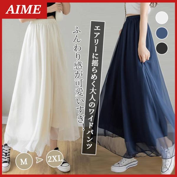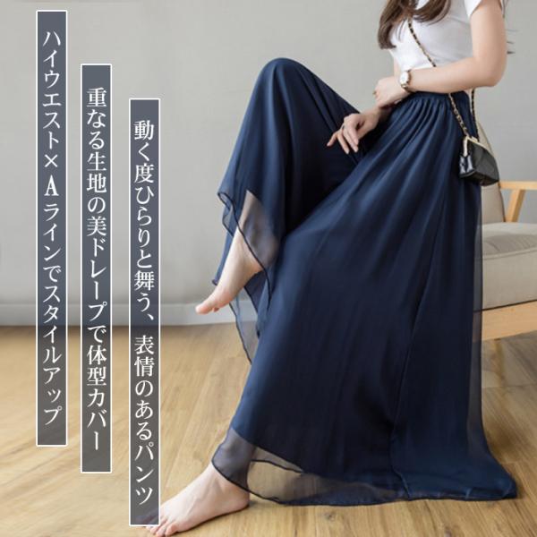 ワイドパンツ 夏 秋 レディース 30代 40代 50代 シフォン チュール ガウチョパンツ シアーパンツ 裏地あり 春 薄手 10代 20代
