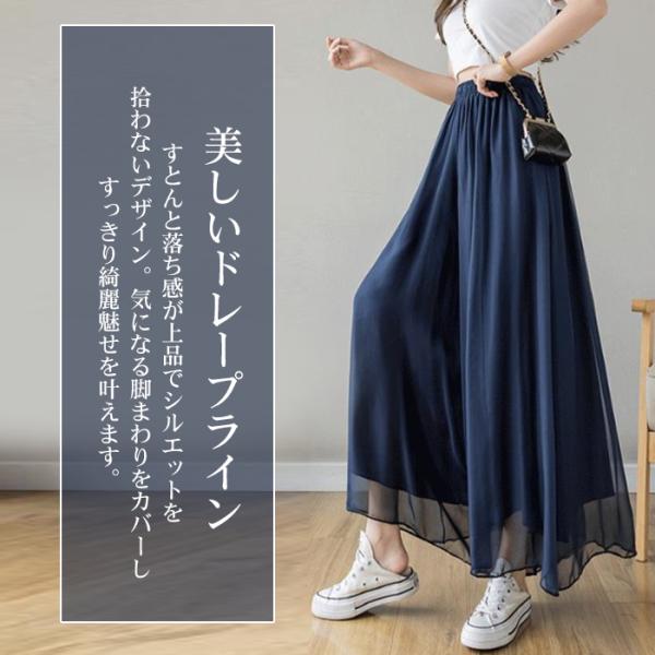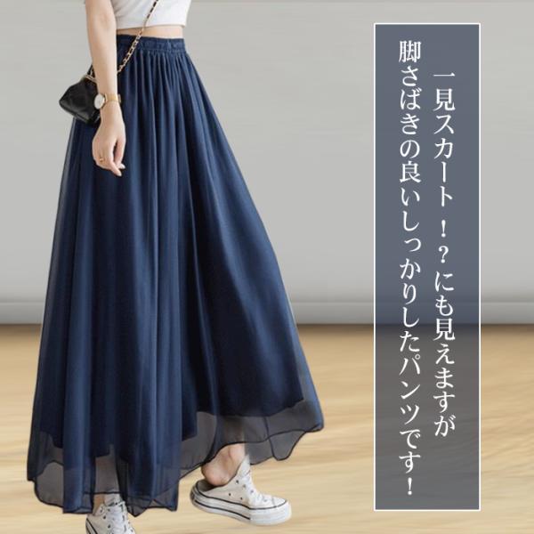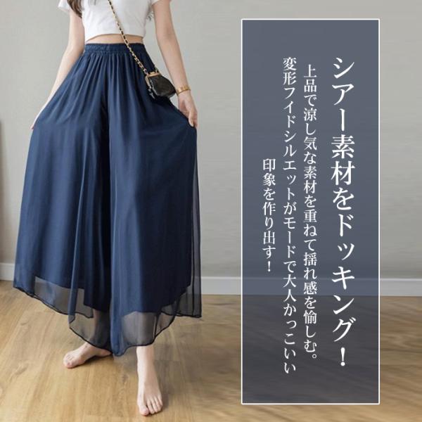 ガウチョパンツ 夏 シアーパンツ 裏地あり ワイドパンツ レディース シフォン チュール 春 薄手 10代 20代 30代 40代 50代 スカーチョ 透け感