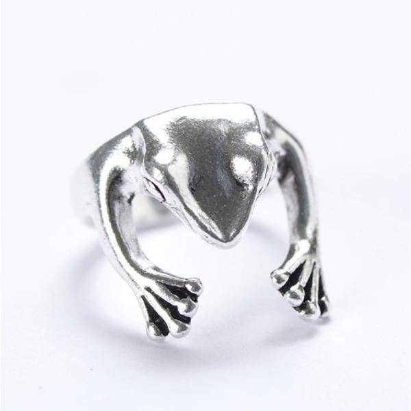リング 上半身カエル 蛙 シルバーアクセサリー シルバーリング 指輪 銀 フリーサイズ サイズ調整可能 蛙 フロッグ かえる 金運 安全 無事に帰る 願掛け ユニーク キュート ピンキー ピンキーリング ファンタジー メンズ レディース アクセサリー アニマル 爬虫類 蛙 合金製 アマガエル