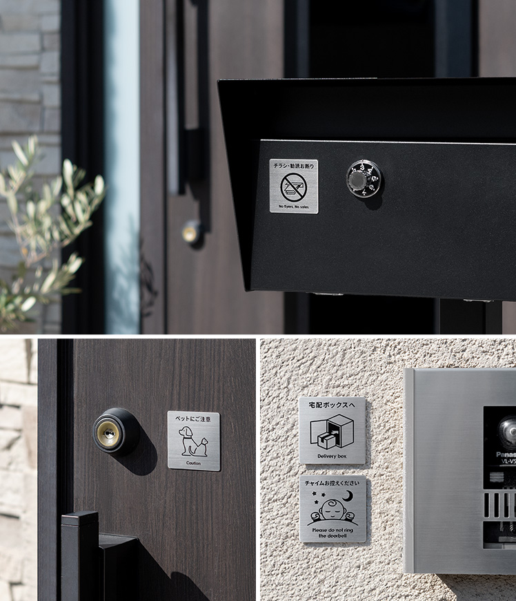 宅配ボックス 玄関 ポストプレート 両面テープ 宅配便 郵便 置き配 チラシお断り 勧誘お断り チャイム ペット注意 赤ちゃん おしゃれ ステンレス