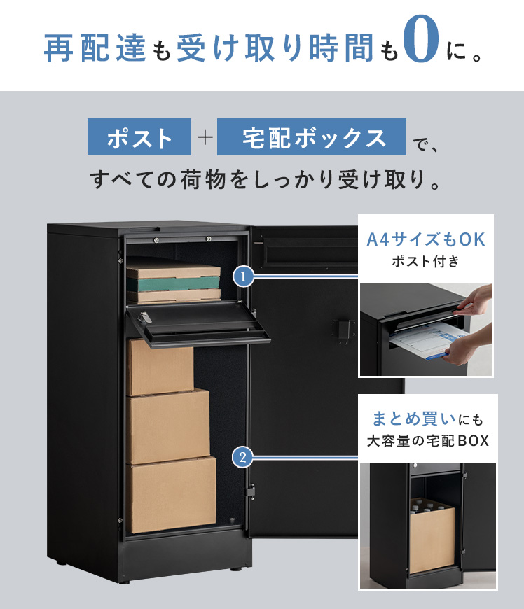 宅配ボックス 戸建 ポスト 置き肩 郵便受け 置き配ボックス 大型 ゼロリターンキー 工事不要 宅配box ポスト一体型 屋外