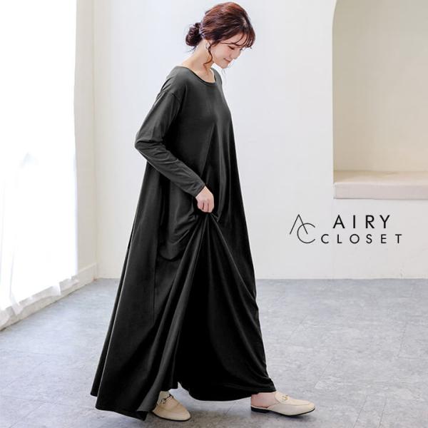 マキシワンピ Tシャツ 無地 シンプル 長袖 フレア ワンピース レディース 産後 妊婦 大人 カジュアル オーバーサイズ rt3080