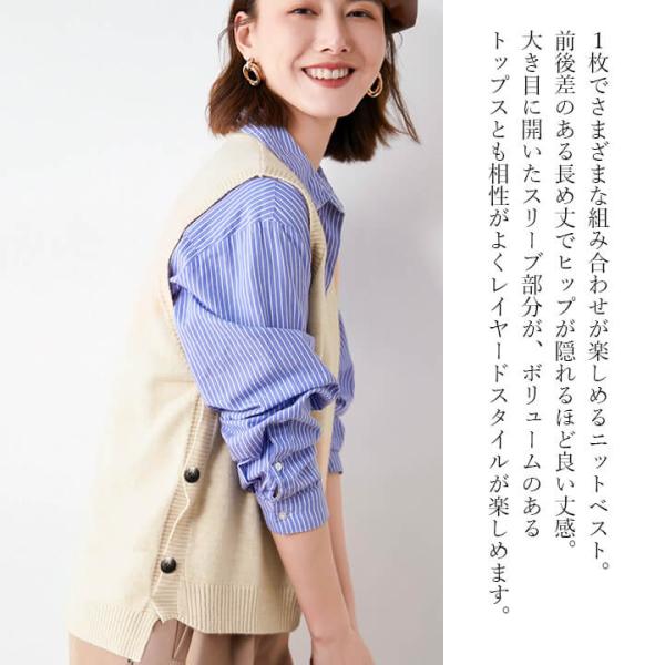 サイドのボタンがお洒落なニットベスト。