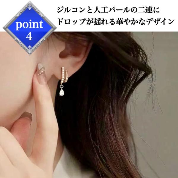 イヤリング 痛くない 40代 50代 ノンホール パール 揺れる おしゃれ 雫 ドロップ 2連 イヤーカフ 30代 20代 レディース