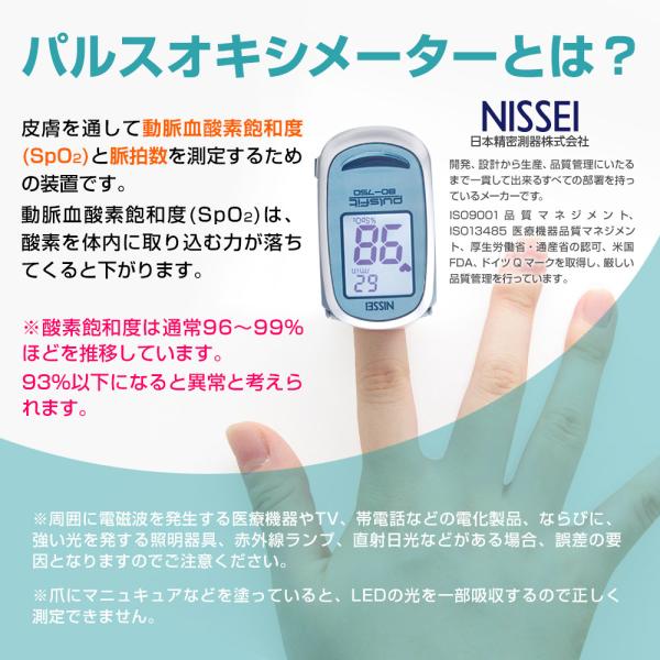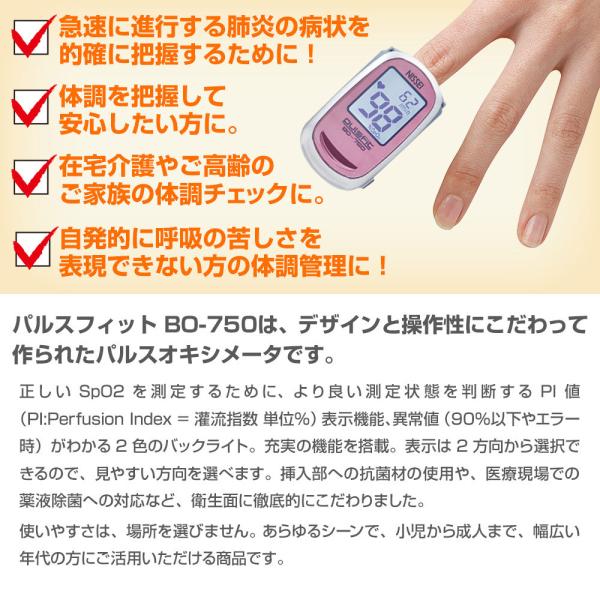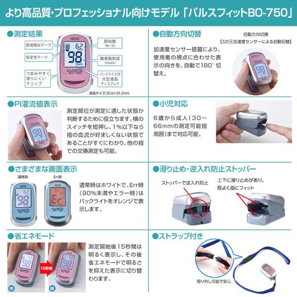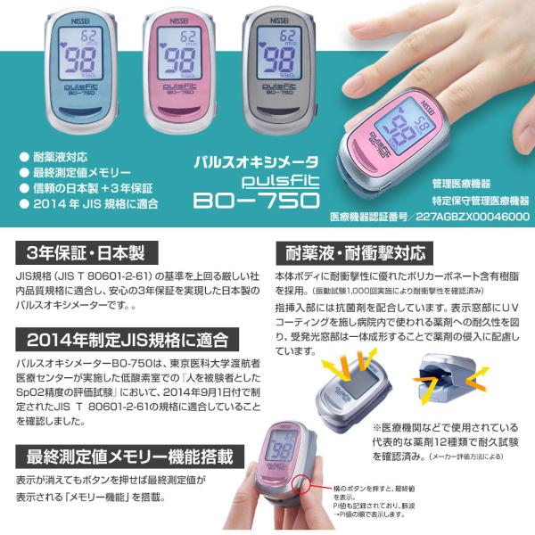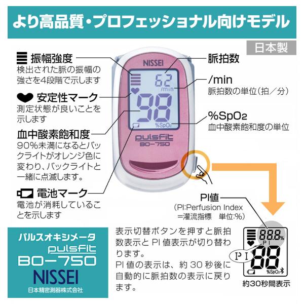 パルスオキシメーター 日本製 パルスフィット BO-750 血中酸素濃度計 日本精密側器(NISSEI) 収納ケースプレゼント!